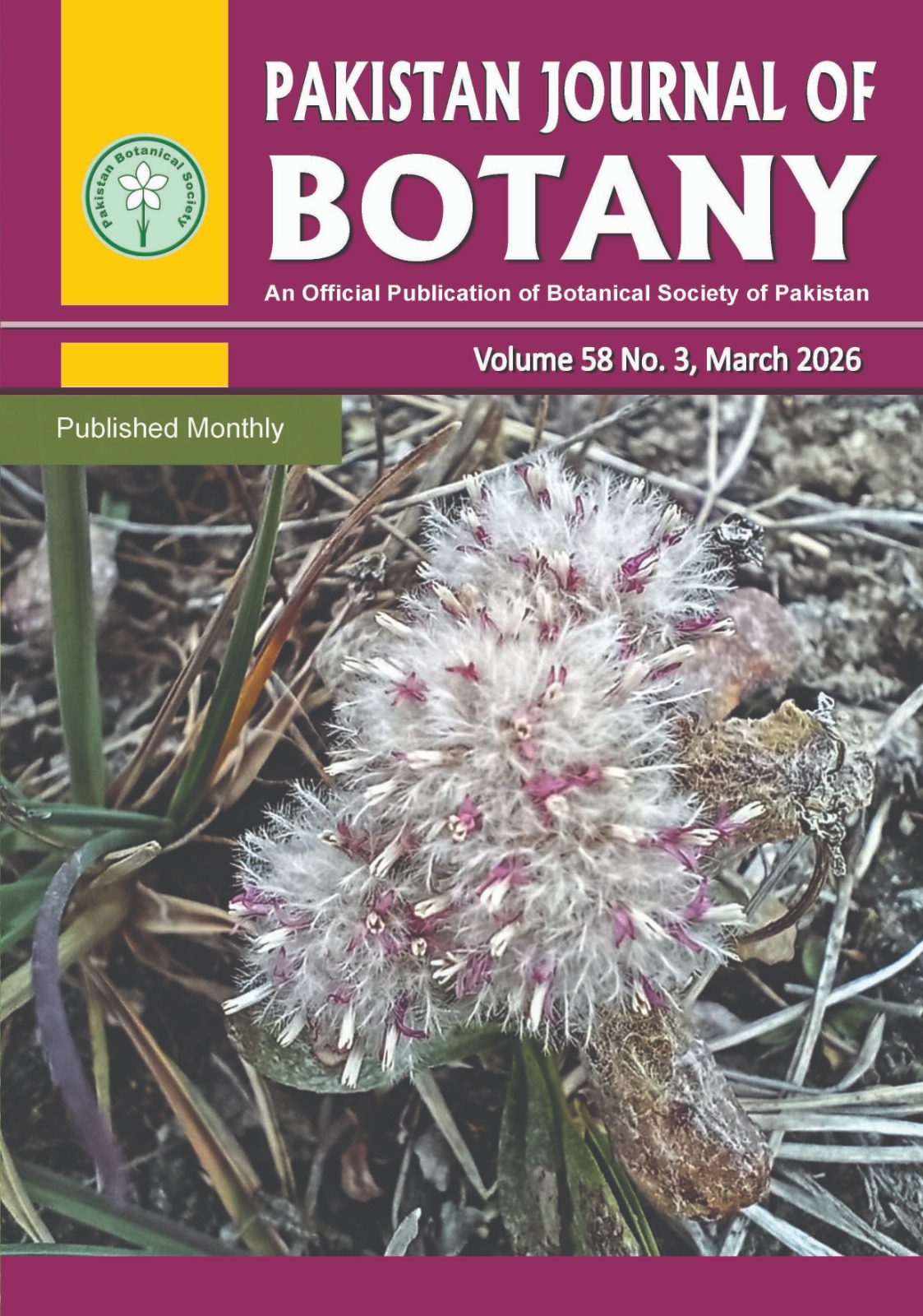 Botanical Society of Pakistan is one of the leading societies that aims to cultivate, promote and disseminate the knowledge of all the branches of plant sciences. BSP provides an opportunity to active research workers to present their results and to generate discussions for further planning of their research. Pakistan Journal of Botany (PJB) is a peer-reviewed bi-monthly publication of the Botanical Society of Pakistan. PJB is being published since 1968. The PJB publishes original, innovative research articles including reviews on all aspects of plant sciences including Physiology, Biochemistry, Systematics, including Molecular Phylogeny, Evolution, Genetics, Biodiversity and Conservation, Paleobotany, Ecology, all plant groups and allied organisms including Algae, Cyanobacteria and Fungi. To fulfill our mission of spreading innovative and meaningful research on plant sciences, we keep our publication charges low to encourage brilliant researchers who are unable to pay higher charges.
