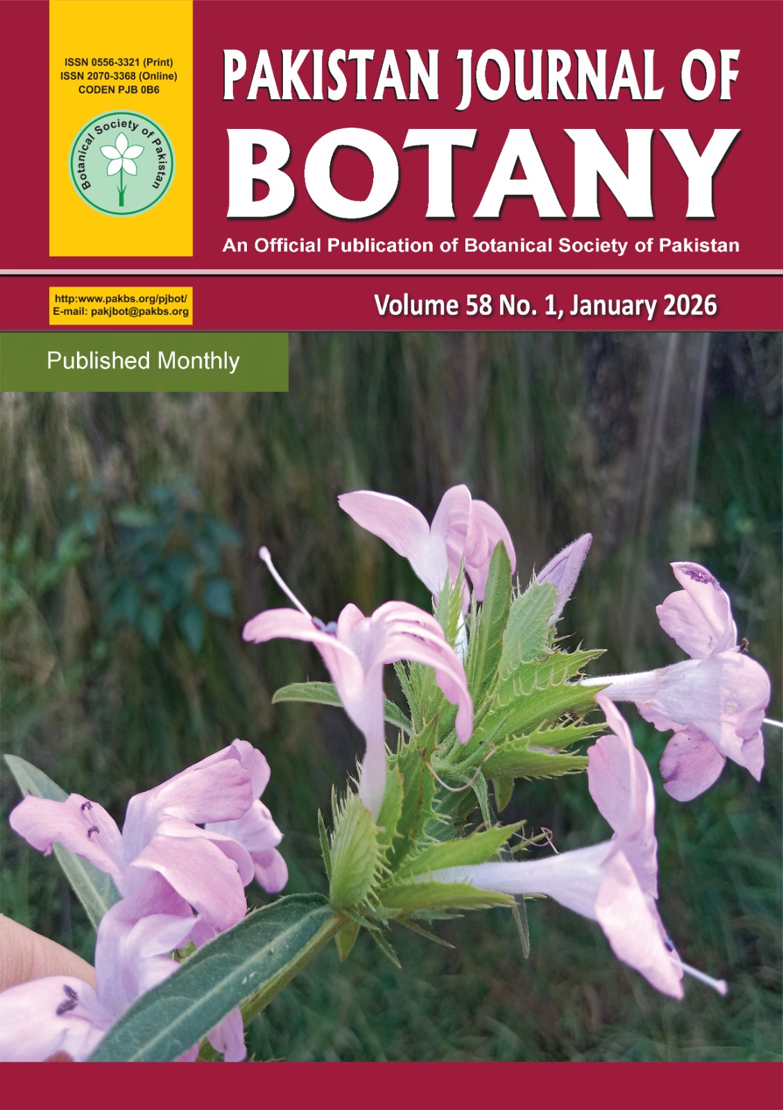 Botanical Society of Pakistan is one of the leading societies that aims to cultivate, promote and disseminate the knowledge of all the branches of plant sciences. BSP provides an opportunity to active research workers to present their results and to generate discussions for further planning of their research. Pakistan Journal of Botany (PJB) is a peer-reviewed bi-monthly publication of the Botanical Society of Pakistan. PJB is being published since 1968. The PJB publishes original, innovative research articles including reviews on all aspects of plant sciences including Physiology, Biochemistry, Systematics, including Molecular Phylogeny, Evolution, Genetics, Biodiversity and Conservation, Paleobotany, Ecology, all plant groups and allied organisms including Algae, Cyanobacteria and Fungi. To fulfill our mission of spreading innovative and meaningful research on plant sciences, we keep our publication charges low to encourage brilliant researchers who are unable to pay higher charges.