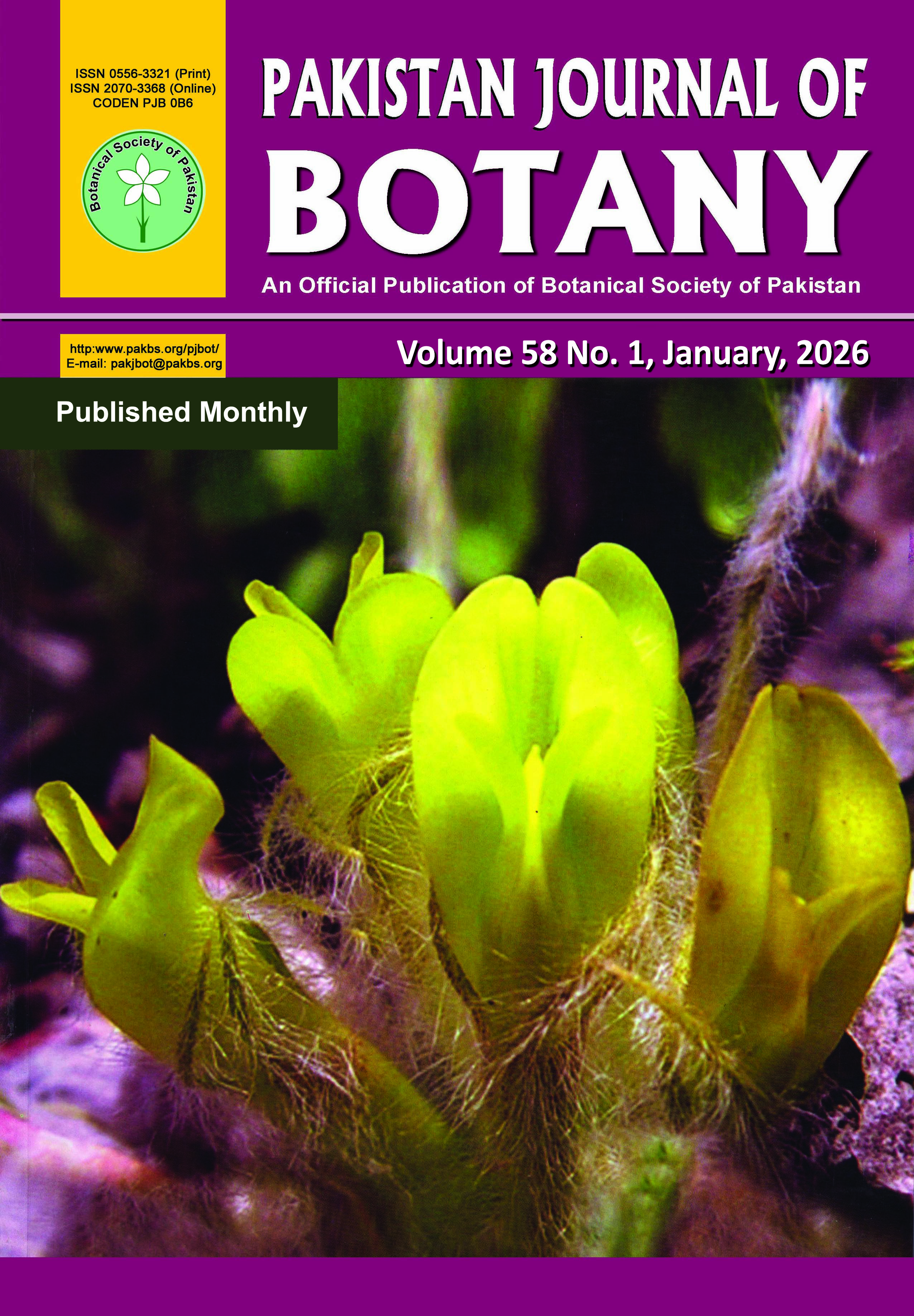 Botanical Society of Pakistan is one of the leading societies that aims to cultivate, promote and disseminate the knowledge of all the branches of plant sciences. BSP provides an opportunity to active research workers to present their results and to generate discussions for further planning of their research. Pakistan Journal of Botany (PJB) is a peer-reviewed bi-monthly publication of the Botanical Society of Pakistan. PJB is being published since 1968. The PJB publishes original, innovative research articles including reviews on all aspects of plant sciences including Physiology, Biochemistry, Systematics, including Molecular Phylogeny, Evolution, Genetics, Biodiversity and Conservation, Paleobotany, Ecology, all plant groups and allied organisms including Algae, Cyanobacteria and Fungi. To fulfill our mission of spreading innovative and meaningful research on plant sciences, we keep our publication charges low to encourage brilliant researchers who are unable to pay higher charges.